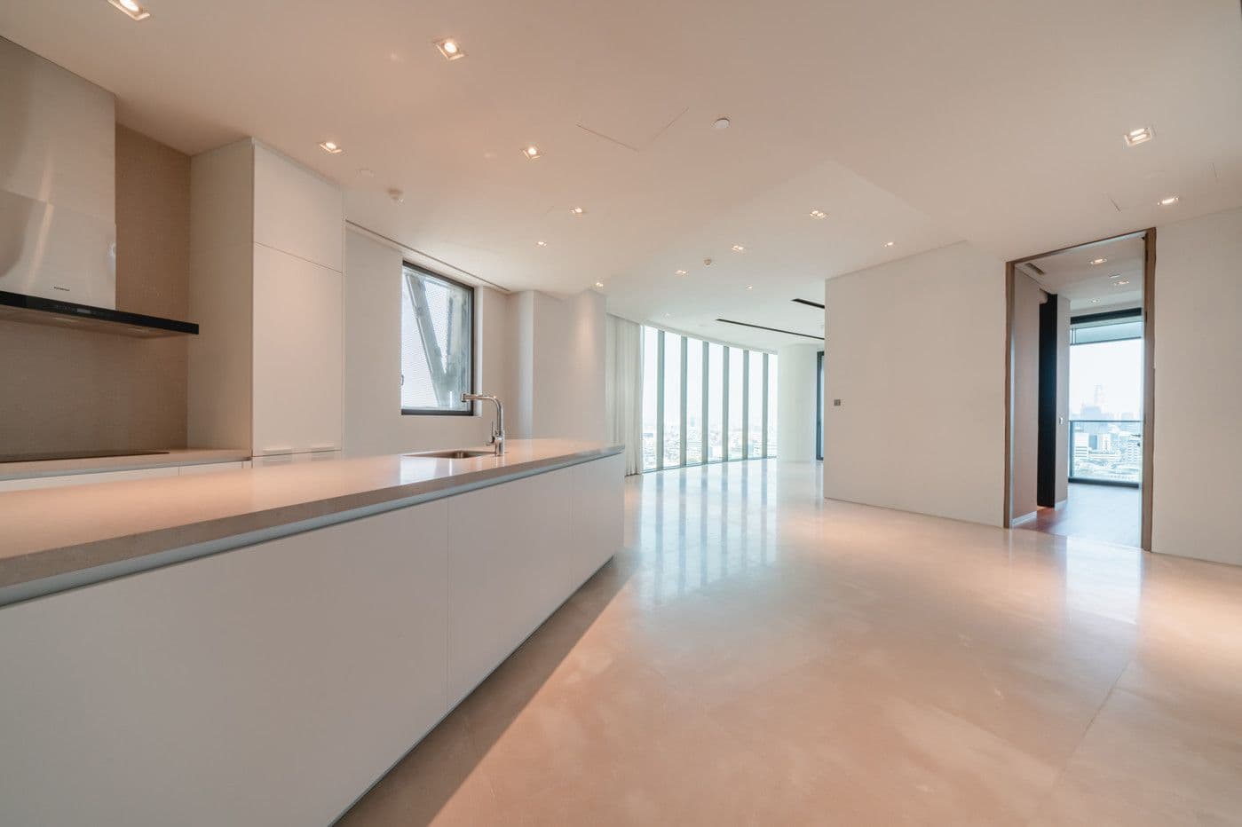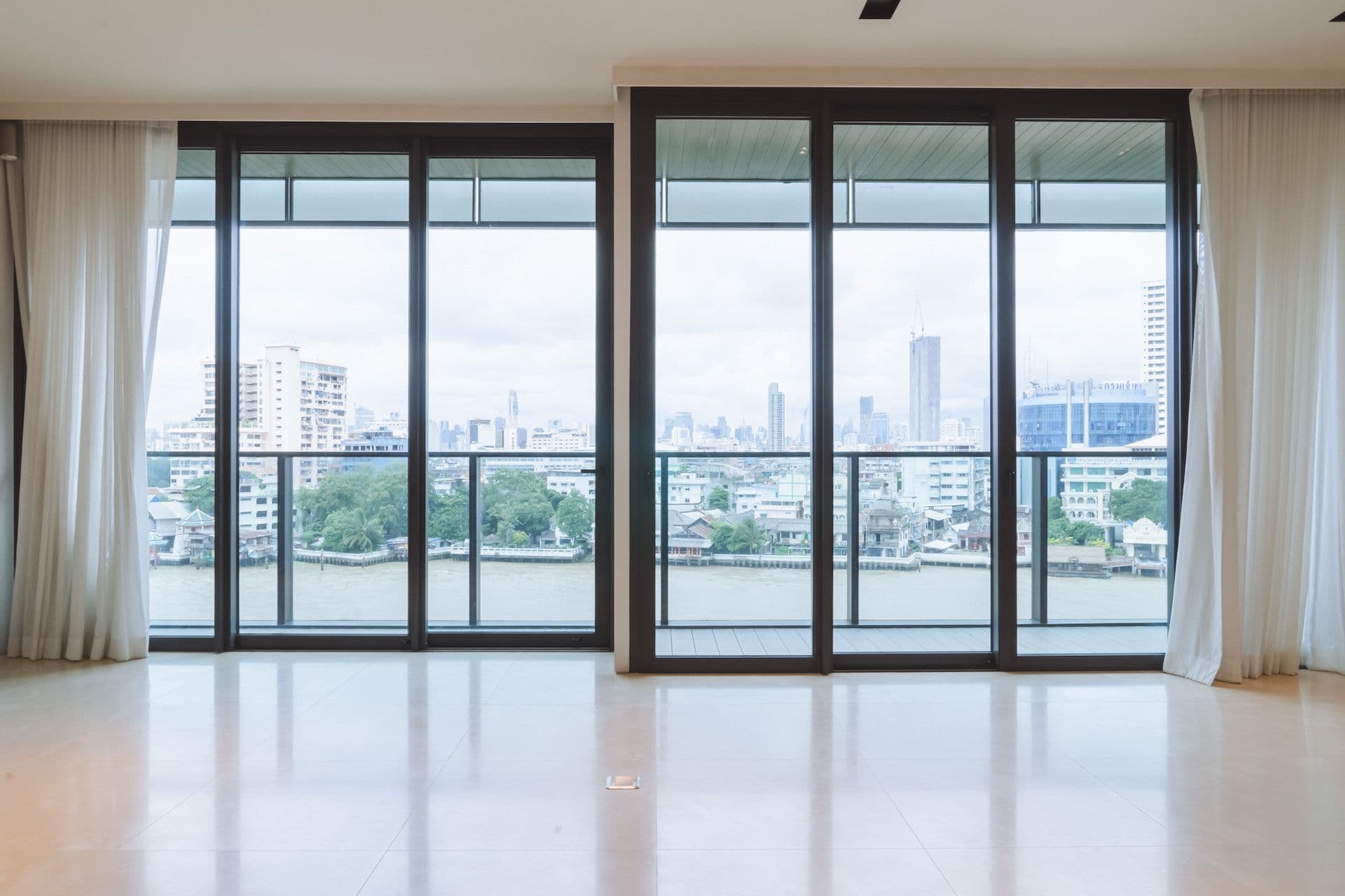 Every residence is conceived as a light-filled haven, with expansive windows framing ever-changing river scenes and the city beyond. Natural materials, refined finishes, and bespoke details evoke a sense of understated elegance, while lush landscaping and serene water features blur the lines between indoors and out.