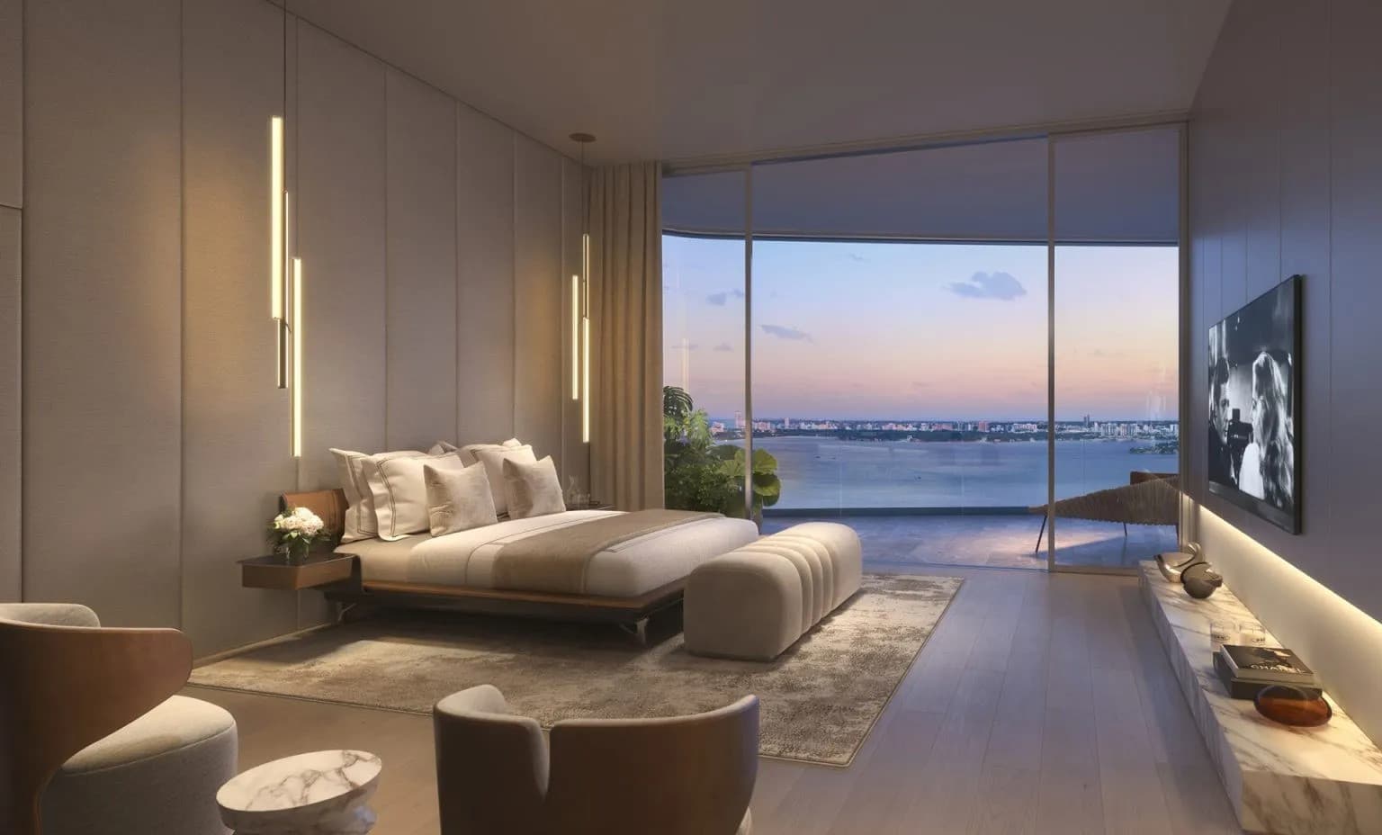 Floor-to-ceiling glass frames panoramic waterfront vistas, while Italian-crafted interiors showcase materials and finishes that tell stories of innovation.