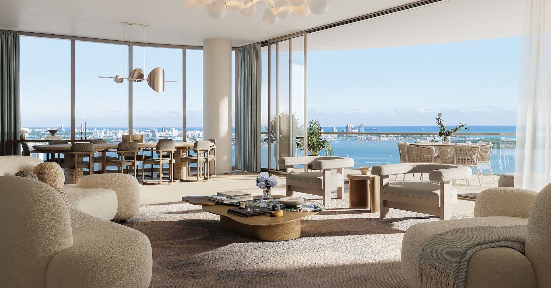 Interiors by Rockwell Group evoke a sense of understated glamour, where natural light, rich textures, and bespoke details create an atmosphere of effortless sophistication. Expansive terraces and floor-to-ceiling windows frame breathtaking vistas, inviting residents to connect with the beauty of the bay and the energy of the city.