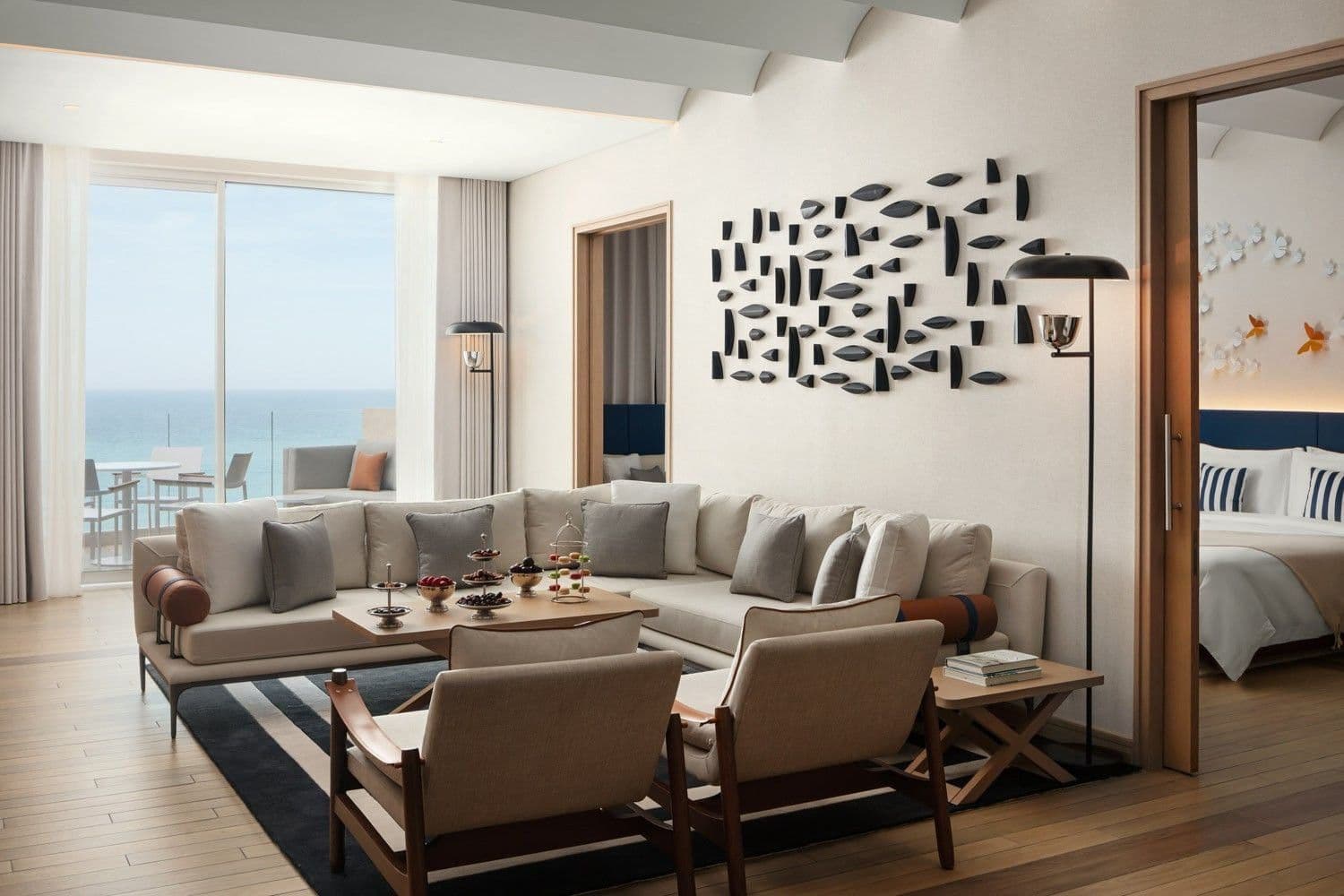 The vision for The Residences at The St. Regis Al Mouj Muscat is to create a sanctuary where modern glamour meets the tranquil spirit of Oman’s coastline. Inspired by the natural beauty of the Arabian Sea and the vibrant energy of Muscat, the architecture and interiors evoke a sense of effortless sophistication and timeless comfort.